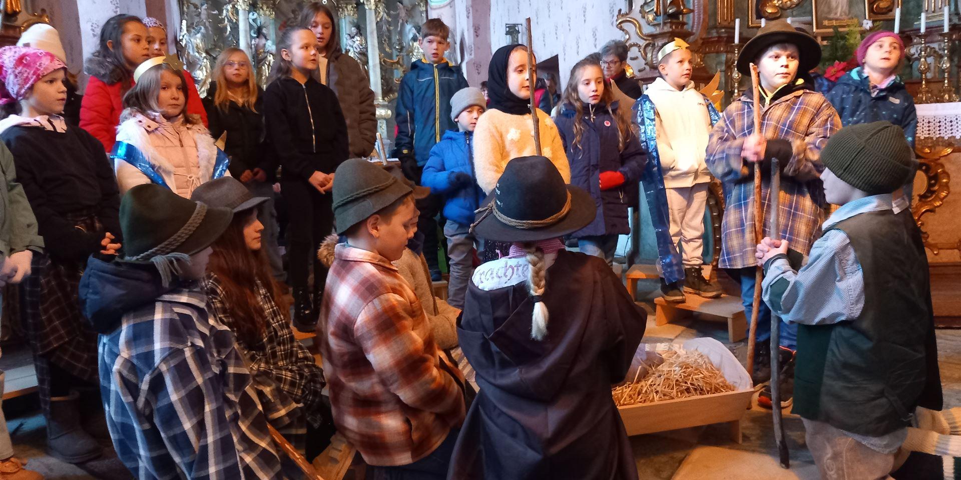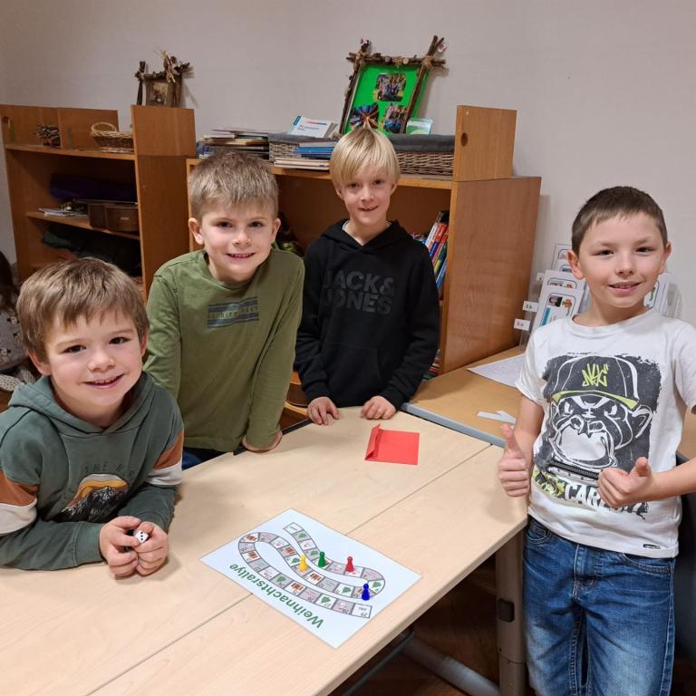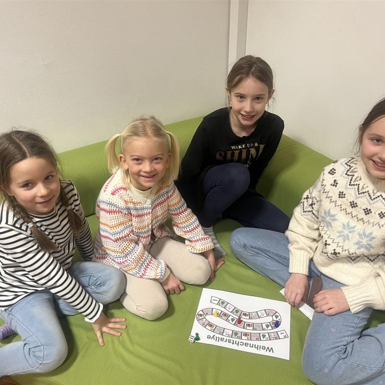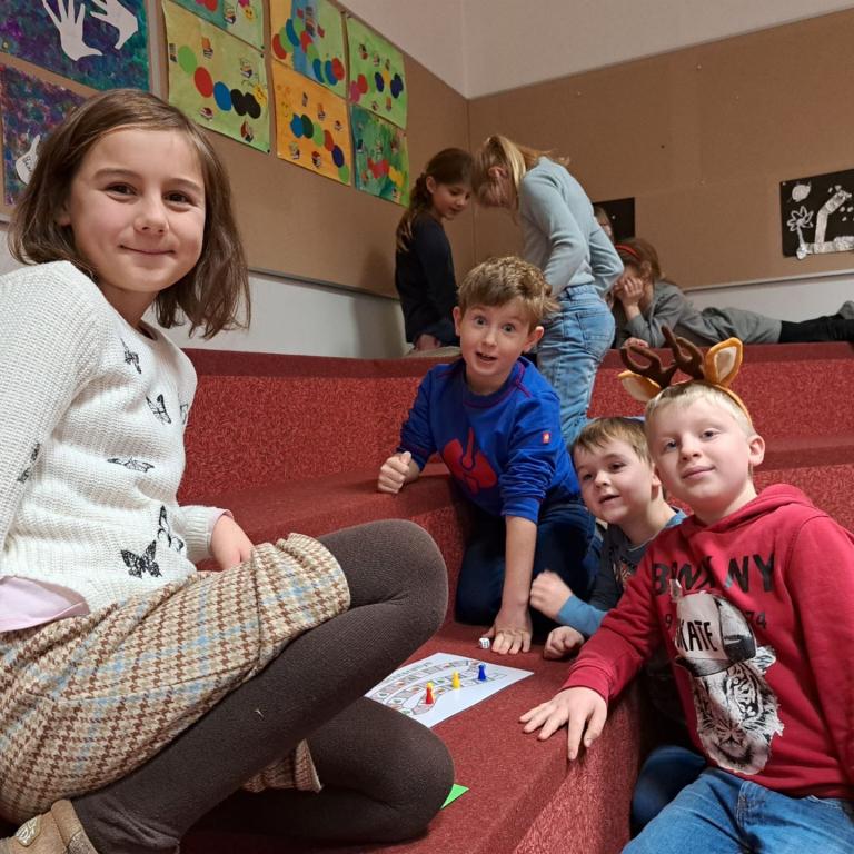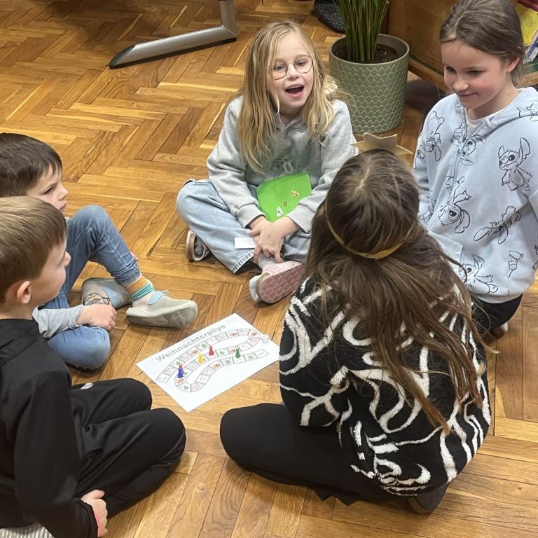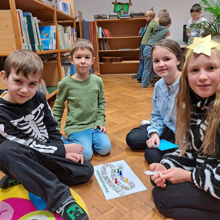 Die Schülerinnen und Schüler der 1. Klassen hörten aufmerksam zu und tauchten gemeinsam in die weihnachtliche Geschichte ein. Im Anschluss an das Vorlesen fand ein Spiel statt, das zur Festigung des Inhalts diente und allen Kindern großen Spaß machte.
