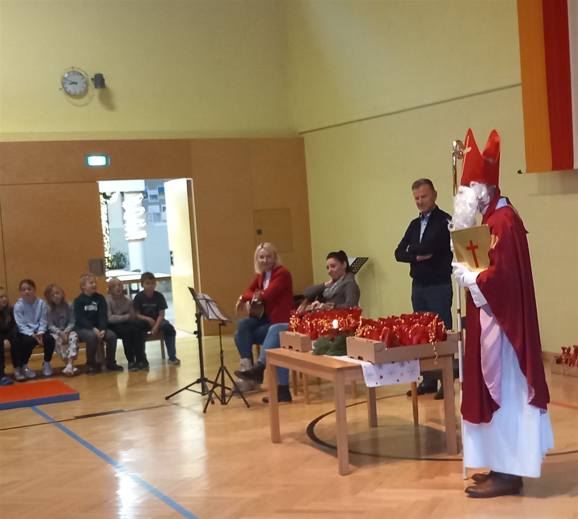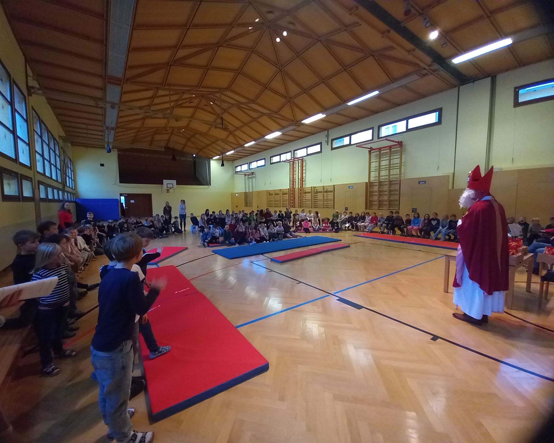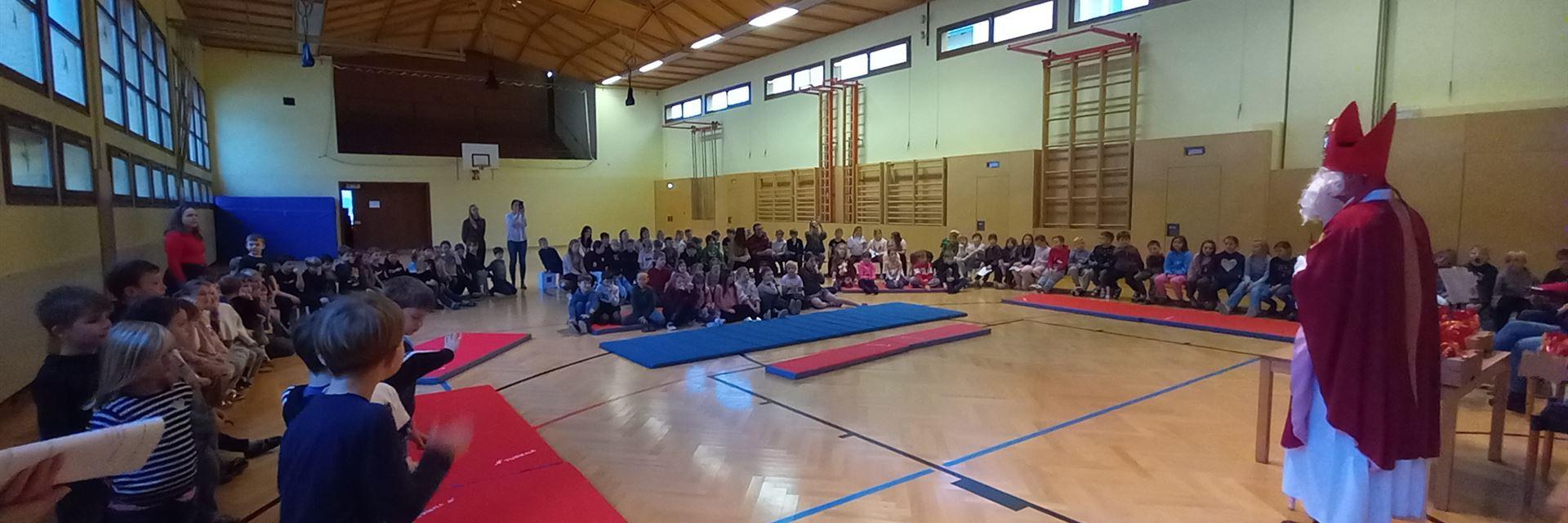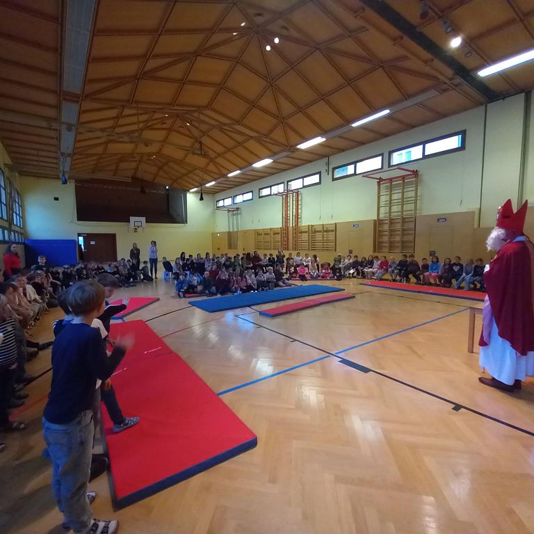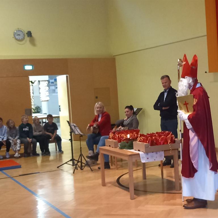 Am 5. Dezember besuchte uns der Nikolaus. In der Kulturhalle feierten wir gemeinsam mit den Kindergartenkindern und allen Kindern der Schule. Die Kinder sangen schöne Nikolauslieder und trugen Gedichte vor. Der Bischof las aus seinem goldenen Buch vor und verteilte zum Abschluss jedem Kind ein Nikolaussackerl. „Vielen Dank, lieber Nikolaus! Wir freuen uns schon auf das nächste Jahr!“
