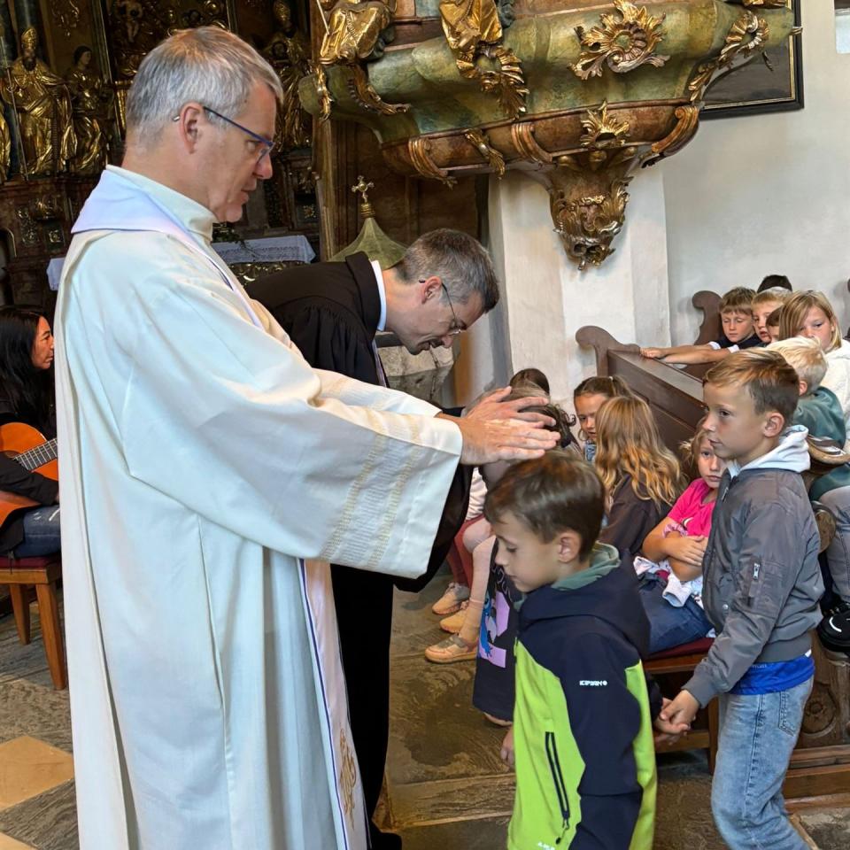 Zum feierlichen Abschluss erhielten die Kinder der ersten Klasse einen besonderen Segen. Damit wurden sie herzlich in die Schulgemeinschaft aufgenommen und für ihren neuen Lebensabschnitt gestärkt.