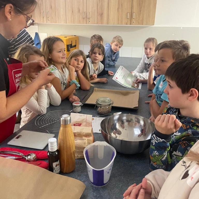 Mit anschaulichem Material arbeiteten die Lernenden spielerisch mit der Ernährungspyramide. So wurden die Grundbausteine einer ausgewogenen Ernährung verständlich dargestellt. Dazu führte die Klasse eine Forschermappe, in der Hypothesen, Beobachtungen und Ergebnisse dokumentiert wurden. So entstand eine klare Dokumentation der Lernschritte und eine nachverfolgbare Lernentwicklung. Im Verlauf des Projekts bauten die Schüler auch Kresse an und erlebten den Weg vom Samen zur Ernte hautnah. Die eigene Ernte wurde am Ende des Projektes gemeinsam verkostet. Die Kombination aus Theorie, Praxis und Genuss motivierte die Schülerinnen und Schüler, leckere, ausgewogene Mahlzeiten zu planen und auszuprobieren. Auch die Mitwirkung der Seminarbäurinnen motivierte die Klasse neue Rezepte auszuprobieren und gemeinsam eine gesunde Jause zu genießen. Zitat der Klasse „Am besten war das gemeinsame Kochen“