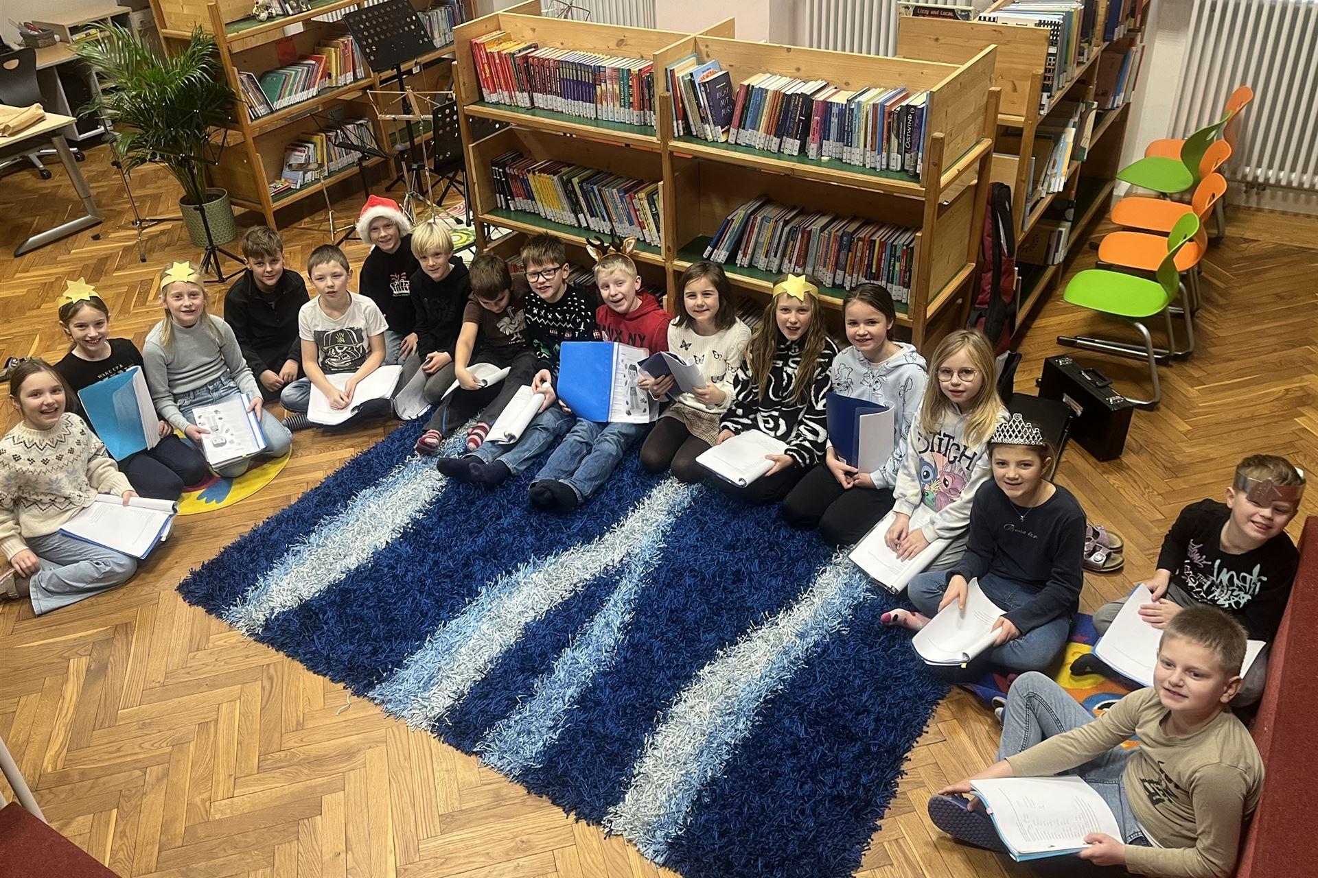 Die Kinder der 3b-Klasse bereiteten den beiden ersten Klassen eine besondere vorweihnachtliche Freude. In der Schulbücherei lasen sie das Weihnachtsstück „Chaos im Weihnachtsland“ vor.