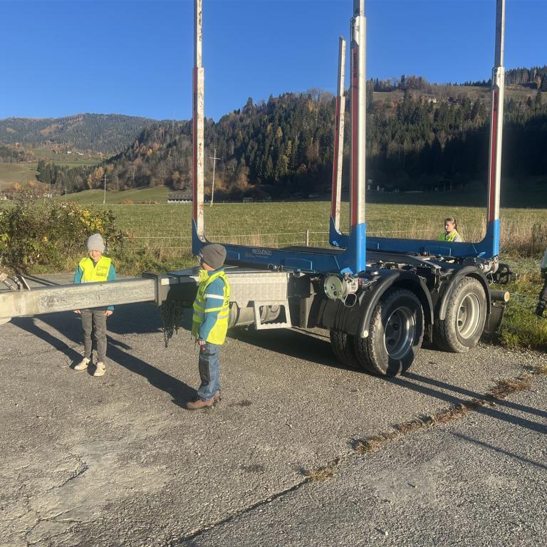 Besonders anschaulich wurde die Schulung durch einen bereitgestellten LKW der Firma Weisstrans. Die Schülerinnen und Schüler durften selbst im Führerhaus Platz nehmen und erleben, wie eingeschränkt die Sicht für LKW-Fahrerinnen und -Fahrer ist. So wurde deutlich, warum besondere Vorsicht im Umfeld großer Fahrzeuge notwendig ist.